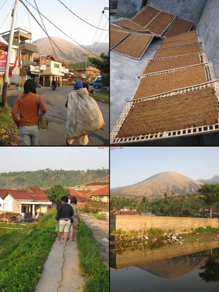 Pulang ke penginapan, tidurlah kita. Tewas semua, gak ada yang ngeh dengan bunyi alarm, jadi baru bangun jam 6.30 untuk foto2 kolam di belakang penginapan yang cukup nice. Gunungnya juga keliatan bersih, dengan ikan-ikan di kolam yang super banyak. Lanjut jalan kaki ke atas, mau nyari pemandian yang terbuat dari batu2 alam, yang ternyata ndak ada. Adanya cuma pemandian gitu yang dibuat dari ubin2 biasa, hihi.. Jadilah kita tur di kampung Cipanas itu, lewati lembah, foto2 tembakau yang lagi dijemur, dan nyabu alias nyarep bubur yang agak tawar rasanya.