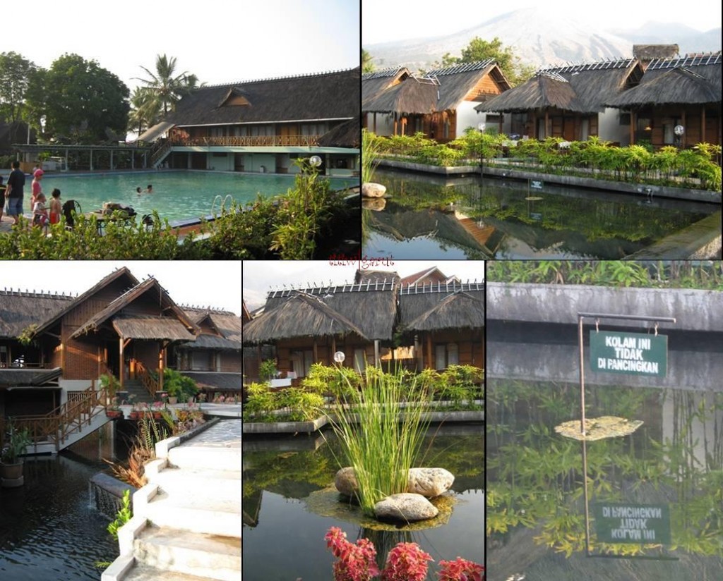 Saya dan Ime masuk ke sebuah Bungalow megah bernama Sumber Alam. Masuk doang dan hunting foto di dalemnya. Tempatnya lucuu!! Batu-batu alam, kolam ikan natural, nah ini nih yang kite cari! Katanya sih, penginapan ini adalah “First environmental aware resort” yang sebenernya eike agak2 kurang paham juga apa maknanya.