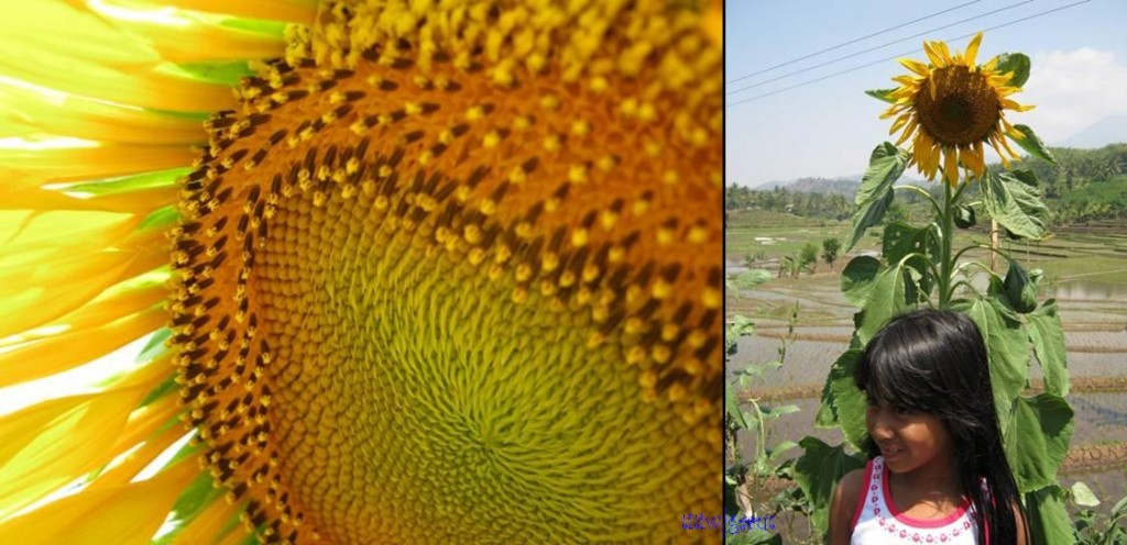 Belom puas cuma naik2 rakit doang, kita kongkow di sekitar yang lagi ada perayaan 17 Agustusan. Mas Nugi foto2 orang lagi pencak silat yang lagunya “Tujuh belas agustus tahun empat liima..”. Eh gak dinyana ada bocah yang bilang “Sir, take my picture, Sir!” Lha.. diliat dari segala penjuru mata angin juga laki gue itu kagak ada bule2nya, tong! Ahahaha.. abis makan rujak, bakso, dan teh botol seperti biasa, kita lanjutin perjalanan menuju “Candi Cangkuang”. Karena jalan menuju candi ternyata elok nian, kami putuskan untuk berhenti dan menggila. Hamparan sawah menghijau, gunung menjulang, dan bunga2 matahari yang menatap malu2 langsung habis didera oleh lensa2 kamera kami. Duh, gerah2 gini jadi pengen nyanyi.. “Sunny.. Sunny..” *BCL mode: on*