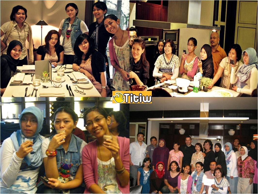 Pas demo coklat, saya yang gak terlalu gemanah gituh sama masak memasak (beruntunglah kalian pria2 yang tidak mau sama saya..) Cuma foto foto sana sini sama mas Sandi. Si chef yang berbahasa Inggris dengan aksen Perancis totok itu ditemani oleh mbak Asisten dari Jakarta yang mirip ama si Nyonya Dhita. Bikin cokelat itu ternyata gak semudah yang kita sangka. Cokelat Indonesia itu gak terlalu bagus karena kandungan gulanya yang terlalu banyak, dan cokelat yang masih dianggap paling berkualitas di dunia adalah cokelat Belgia karena melalui berbagai proses dan disaring hingga 50 mili micron kalo gak salah. Jadi inget kalo pulang kampung ke Makassar bau cokelat mentah meruap di jalanan, secara orang sana banyak banget yang bercocok tanam cokelat.